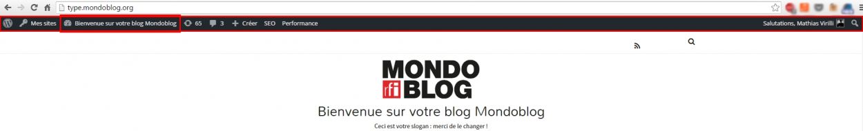 Vous pouvez accéder à tout moment à votre interface de gestion grâce à la barre qui s’affiche en haut de votre blog :
